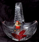 Anna Huitte Bleikristall Handcrafted Cut Lead Crystal Basket with Ruby Flash