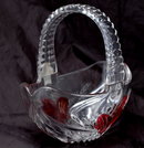 Anna Huitte Bleikristall of Germany Handcrafted Cut Lead Crystal Basket with Ruby Flash. It measures 7" tall x 5 3/4" wide x 4.25" deep. Lovely little cut crystal basket in excellent condition.