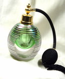 Cut Crystal Glass Perfume Bottle with Atomizer Iridescent Peacock Green Blue