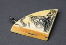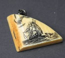 Fossilized Ivory Scrimshaw Sailing Ship Pendant