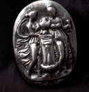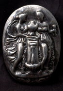 Hand Wrought Sterling Silver Goddesses in Repousse Brooch Pin pendant. It is solid sterling silver and the back is sealed. It measures 1 5/8" x 1 1/8" and weighs 8.6 grams It is etched 925 on the back.