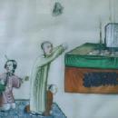 Painting on Silk Art - Elder with Woman & Child at