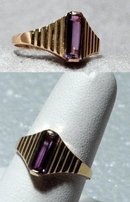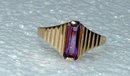 14K solid Gold Art Deco Ring with approx. 1.10 Carat Amethyst Gem stone. The ring is a size 7. The table of the stone is 10mm x 3-4mm.
