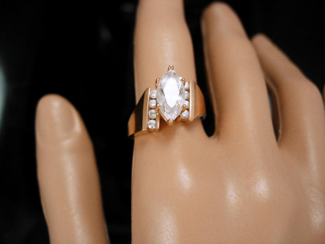 14k gold ring Engagement ring Marquise Diamonique 14kt Ring faceted top solitaire Ring Vintage jewelry Size 7 3/4