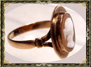 One of the earlier cameo periods where the frills were not incorporated into jewelry makes pieces like this quite hard to find. Georgian period pieces were hand wrought and so very exquisite. This one is a little over 1/2 long with a shell cameo center. The size is a 7 ( quite large for woman of that period). In very good condition this is 10kt and has a wonderful reddish hue.