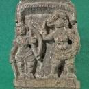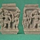 The second panel is carved in high relief, depicting Lord Rama holding his bow and Lord Vishnu as Varaha, both standing on a base with an incised inscription.