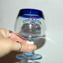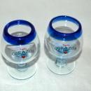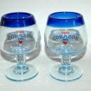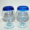 2 Corazon De Agave Tequila Hand Blown Glass Cobalt Blue Rim Stemmed Shot Glasses.