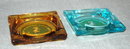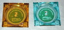 Pair of TraveLodge Ashtrays. One is amber and the other aqua. Both have the old Travel Lodge Logo " For the best rest - East or West Travelodge Highway Hotels.