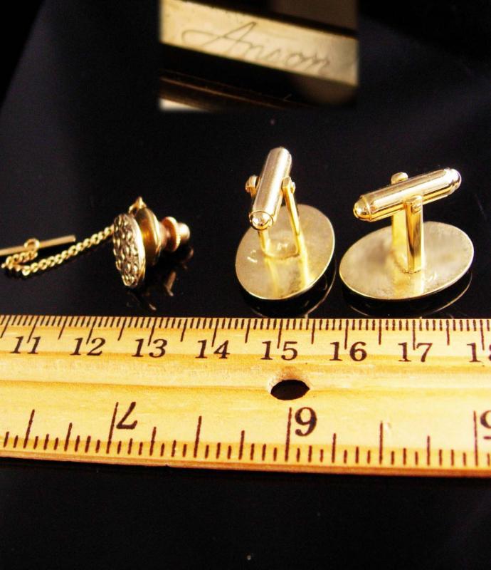 The abstract cufflinks resemble drops of water. Very elegant and unusual. And remember, a personal well thought out gift shows you took the time to care about that special person in your life. Our items are classic, sometimes unusual and vintage and sometimes a little bizarre. Whether it is a memory from their past or something that reminds you of how special they are, purchasing from us is a unique idea that you can’t get from a store every day. Just say the word and we will wrap it and put a beautiful bow on it for you at no extra charge . ✽ All you have to do it watch them smile and enjoy their special gift ♪♪F And while you are getting ideas for someone else, take a peek at some of our OTHER items. We have neat old collectibles and ODDITIES and some are REALLY one of a kind BIZARRE! https://www.etsy.com/shop/NeatstuffAntiques?section_id=11469030&ref=shopsection_leftnav_4 Do we have personalized items? Sure!< https://www.etsy.com/shop/NeatstuffAntiques?section_id=11601160&ref=shopsection_leftnav_7) Did you think we forgot the ladies? � https://www.etsy.com/shop/NeatstuffAntiques?section_id=11875005&ref=shopsection_leftnav_8 We have mens accessories including cufflinks here: https://www.etsy.com/shop/NeatstuffAntiques?section_id=11469022&ref=shopsection_leftnav_2 Return to our home page here ∆ https://www.etsy.com/shop/NeatstuffAntiques _______________________________________ PRODUCT DETAILS…………………………………. ♥ Maker: anson ● Material: gold plate ∆ Size: see photo ◘ Weight: ( based on other cufflinks in comparison) medium ♦ Condition: >>>>>>>>>>>>>>>>>>>>>>>>>>>> Because these are vintage estate pieces and are vintage and possibly pre-worn so they are not considered new from the factory….. Please see photos for any wear or light surface scratches that come with age.☺………………. Sold as is and priced accordingly.. All cufflinks ( unless otherwise specified) are considered costume jewelry. We don’t polish these previously owned well loved pieces so we can keep the original patina. We try and photograph all of the pieces next to a ruler so you can see the actual size. All jewelry sold as found. We use the descriptions of any stones from the manufacturers titles when they were first produced. When we refer to the stones as moonstone or jade or garnet, for example, we are using how the original manufacturer of the pieces used them. We cannot guarantee the authenticity of a stone in a costume piece of jewelry. All pieces have been worn at least one time unless otherwise specified. Although the pieces we carry are unique and interesting they may have a little wear ( if any) but they sure have a lot of love that came with them when they were first purchased way back when. Just click on our photos for more close ups to help you see all the cool detail on each piece. __________________________________________ Our policies are listed here so please check them out prior to purchase https://www.etsy.com/shop/NeatstuffAntiques/policy?ref=shopinfo_policies_leftnav __________________________________________ WHERE can you see our NEW LISTINGS of jewelry and antiques? FOLLOW US ON FACEBOOK https://www.facebook.com/neatstuffantiquesonetsy/ (You can join us on pinterest here : https://www.pinterest.com/neatstuffonetsy/ ) or visit our other shop here https://www.etsy.com/shop/vintagesparkles I will be happy to combine shipping if you purchase from both. __________________________________________ DO WE ENGRAVE?: We Do not offer engraving services of any sorts as we are not equipped to do so I’m sure your local jeweler would be happy to do so, sorry for any inconvenience thank you. __________________________________________ Do you need to convert our US ring sizes to your country>? This page will be a big help. http://www.ringsizes.co/resources.html __________________________________________ IF YOU NEED A LAYAWAY PAYMENT OPTION PLEASE DO NOT HESITATE TO CONTACT ME ___________________________________________ ✈✈✈SHIPPING UPDATE*** Shipping rates for domestic and international delivery have skyrocketed! We ship priority mail ( so you will get is as quickly as possible) from FLORIDA IN THE USA to anywhere in the U.S. with insurance as a courtesy on orders over $20.00. If you wish to have another method of delivery (i.e. First Class International, overnight etc) PLEASE convo me before placing your order. …………WE NO LONGER SHIP TO MEXICO or ITALY………………………….. _____________________________________________ SAVE MONEY ***** My goal is to save both of us money on shipping. (Delays might occur because of bad weather and during holiday or peak times of shipping. Please plan accordingly with your orders. We cannot guarantee delivery dates, only give you the dates and times the post office gives us.) FEEL free to email us at anytime ✉ neatstuffantiques@gmail.com Return to our home page here ∆ https://www.etsy.com/shop/NeatstuffAntiques January10 2017