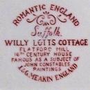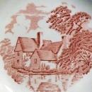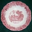 J. & G. Meakin "Romantic England" bowl in red transfer print. Made in England before 1961. Measures 5.5"d. Very good condition with little surface wear, no cracks or chips. Some pieces may have crazing of the glaze. Have 5, priced separately, but happy to combine shipping. Just contact me before ordering. Inglenook Antiques...Established 1989.