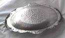 A very nice example of an oval dish in the ever pupular Tulip pattern of Rodney Kent. You can see the wonderful texture of the hand hammered bowl. The tulips are beautifully worked in the center. His mark is clearly visible on the back. It has been gently used, but still in good to very good condition. There are no gouges, but some minor surface scratches. It is in need of a good scrubbing from it's new owner. I would not used any harsh metal cleaner, usually just a soft cloth or brush and dish soap will do the trick. It measures approx. 13 3/4" long, including handles by 7 7/8" wide and 1" deep.