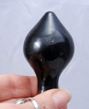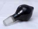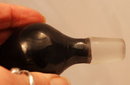 Amethyst Glass Bottle Stopper Although the "amethyst" is so dense that it looks more like black glass. However when held to the light at the neck you can see that is indeed "amethyst glass". It is 3.25" long. The clear cork part is around 50mm at the top and tappers down to a little less. The glass cork has been grounded on the bottom. The condition is very good.