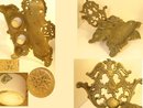 What an elaborate heavy brass double inkwell this is!!Not only is this ornate, but I think these are the original porcelain inserts that are signed on the back. T is also a signature on the bottom of the brass inkwell. This large inkwell measures 9" wide and almost 9" deep. It stands 6" tall. I don't see damage or nicks to the porcelain inserts and the brass is in great condition. THis would be a fabulous piece to put on an antique desk! The marks read : CE )( or EC) on the inserts. The BRass reads: M in a star and the number 5821. And now for the tedious part that you probably already know: PLease remember that vintage & antique items are not mint, nor are they perfect but they sure are full of old history and charm.All items are sold as is and as found (used and probably vintage) Since this is Irreplaceable t can be no returns on this sale.. Please use photos to make your decisions.My definition of Vintage is a style or method formerly in vogue