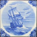 A rare tile by Wedgwood from its "American Series" depicting The Mayflower Arriving in Provincetown Harbor. The tile is printed on a T&R Boote back and so dated to sometime after 1900 (Austwick at 103). It is in very good condition with some wear at the two left corners and edges as shown; surface is glossy and bright. Please write with any questions you may have.