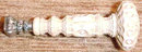 A charming Napoleon III letter seal of machine-turned bone and chiseled silver, French of around 1870. It is in beautiful condition, with no breaks or cracks. The initials "PG" are carved into the silver bottom, which also bears the hallmarks for France after 1848. Approximately 3-5/8 inches in length and 1-3/8 inches in diameter at the top.