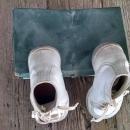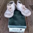 1960's Weather-Bird brand lace up style toddler shoes with Peters International St Louis Missouri original cardboard store box.