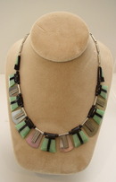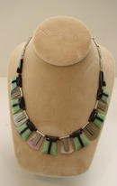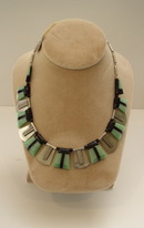 Delightfully Deco Black and Chrome and Lime Green necklace in excellent condition with no cracks or chips