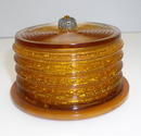 Absolutely beautiful Bakelite applejuice and carmel box. this box is Bakelite and the lid is glass. The color and design a fabulous. It is in excellent condition with no cracks or chips