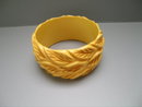 Beautifiul Corn Colored Wide Vintage Bakelite Carved Bangle in excellent condition with no cracks or chips or other damage. It measures 1 1/2" wide and the inner diameter is 2 1/2".
