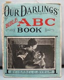 Bible ABC Book 1928. Our Darlings Bible ABC Book, One of the nicest written ABC books I have seen with each letter of the Alphabet telling a bible story. I pictured Q for Quail, the food God sent from heaven. Others include L for Lazarus, R is for Rachel, T is for Temple. Nicely illustrated and written by Isabel C. Byrum, Trumpet ministries. Aprox 7 x 9" and has 64 pages. It is well worn, pencil marks on back cover, center page loose (from staple) but otherwise excellent. You won't be disappointed by this one.