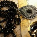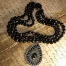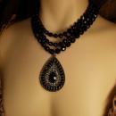 Black glass Vampire Goth necklace huge rhinestone drop 3 strand glass beads