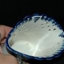 Blue & White Gzhel Porcelain Reticulated Vase From Russia. It is 3 inches deep x 5 inches wide and 4 inches tall. Looks like it could be a cigarette holder or just for decoration. I is pretty with flowers and dots. The condition is excellent.