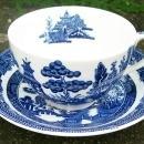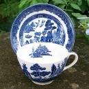 Vintage Johnson Brothers BLUE WILLOW Cup/Saucer Inside Pattern 1960s