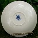 Blue "Willow" cup & saucer, made by Johnson Brothers of England, with pattern inside cup. Crown mark dates from the 1960's. Saucer measures 5 5/8"d; cup 3 3/4"d. No cracks, only a few small chips to the bottoms of the cups, very little surface wear. Best sold first. Have 3, priced separately, but can be combined for shipping discounts. Inglenook Antiques...Established 1989.