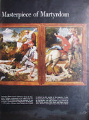 Boston Museum Martyrdom 1963 Article. This color two page October 18, 1963 ad states The Boston Museum Buys a Masterpiece of Martyrdom. Picture shows the Martyrdom of St. Hippolytus a legendary Third Century Christian whom the Emperor Valerian Condemned to be pulled apart by Horses. Magazine tear sheet picture is taken through plastic and may show wrinkles or crookedness that is not in the ad. This original magazine tear sheet measures 10 1/4 inches wide by 13 3/4 inches tall.