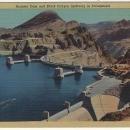 Postcard of Boulder Dam and Black Canyon Spillway in Foreground, Boulder City, Nevada. Back is unused. Postcard is in good condition, wear at edges