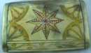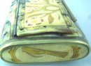 In unusually fine state of preservation, this handsome French country snuff box is formed of blond horn studded and bound with brass. Engraved with stylized designs of birds and flowers and highlighted with deep yellow stain and inlaid red enamel, this fine folk art piece dates from the second quarter of the Nineteenth Century and measures approximately 4-1/8 inches by 2-3/4 inches and 7/8 of an inch deep. (For a charmingly time-worn example, see Trocadero item 418544.)