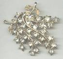 Brooch/Designer/Coro Foliate W/Clear Rhinestones