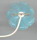 A wonderful example of the 1960's and 1970's "Flower Power" brooch. It is a pretty turquoise daisy like flower with white dots and a white button center. There is some loss to the enamel. The pin back is bent down over the back, but still in working condition. You can see this in the pic, I think. It is in fairly good condition, considering it was an inexpensive form of adornment, made to wear for a season and then discarded! It could use a bit more cleaning. It is approx. 2 1/8"X3 1/2". The shipping fees quoted are for first class/No insurance in the USA only.