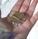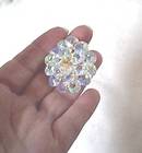 What a sparkler!!! The AB rivoli and crnter margarita beads are wired onto a pierced medallion. Then that is fastened to a solid back so that none of the wires show. The finish on the beads are in good condition. One of the beads has a tiny flea bite out of it, but is very had to see without close examination. It measures approx. 1 3/4" across and 1/2" high. The shipping fees quoted are for priority/Insured in USA.