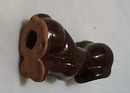 Brown Hound Dog Figurine. This is a brown ceramic hound dog. He is sitting. He has painted on eyes and nose. He is in excellent condition. He is 5" high and 2 1/2" across the bottom.