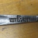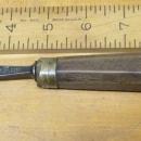 This is a very nice 19th century, 1/2" wide curved gouge chisel marked "BUCK BROTHERS CAST STEEL". A very nice flat sweep gouge chisel. It is out-channel sharpened very sharp and ready to use. The steel measures 1/2" wide at the cutting edge, and tapers back in width toward the tanged end. The steel is in nice condition, no rust, some minor pitting (not near the cutting edge, and the steel alone is 4.6" long from the sharp cutting edge(out-channel), to the handle. Overall length is 10.1". The hardwood handle is very solid, nice shape, with a brass ferrule, we note one grain separation near the ferrule which is holding it from cracking any further, 8 sided style, nice looking, some minor staining, a few dings noted here and there. A top quality chisel that has lasted many years!