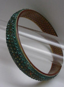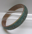 Beautiful vintage celluloid green bangle in very good conditon with all the stones in tact . A few of the stones have less color, but the overall look is great.