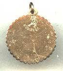 Here is another sports charm, this one for tennis. It is a round, gold filled charm by an unidentified maker-soldier(?Roman) with a sword and a shield with an "E". It is also marked 1/20 12 KGF. It has a pie crust edage. The pic of the back is enhanced so that the scuffs and scratches ar visable. Please believe me, these are not that visable when looking at them normaly. It measures approx. 3/4" across. The shipping fees quoted are for first class/No insurnce in USA.