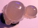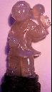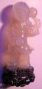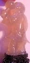 A common gift to a Chinese bride as a prayer for sons was representations of boy-children in many materials. (I have never seen one of a girl, but my mother, who always wanted a girl and only produced four sons over a twenty-year period, would have owned a collection!) This fine little fellow, with the Peach of Prosperity in his right hand and a rattle lifted in his other, is carved from softly glowing clam-broth agate, the face and peach bearing a somewhat whiter luster. Approximately 2-1/2 inches high, exclusive of the rosewood stand,by 1-1/2 inches wide by one inch deep, it is in excellent condition. Chinese, Ching Dynasty, Early Nineteenth Century.