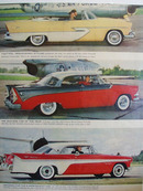 Chrysler Cars With Flight Sweep Ad 1955 This is a December 13, 1955 advertisement. It is a nice color two page ad from Chrysler Corporation. Pictured here is the Chrysler New Yorker 4 door Newport, the Imperial 4 door Sedan, the beautiful Plymouth Belvedere Convertible, the Dodge Custom Royal Lancer V 8 and the De Soto Fireflite V 8 Sportsman. In excellent condition. Photo is taken through plastic and may show wrinkles or crookedness that is not in the ad. This original magazine tear sheet measures 10 inches wide by 13 1/4 inches tall.