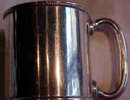 Very little detail but fine quality describes well this excellent mug. The straight-sided body bears an interlaced script monogram, AR flanking V. By Towle Silversmiths, it dates from around 1925 and is in excellent condition. Gilded interior. Approximately three inches tall and four inches wide at the handle.
