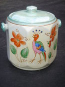 Collectible JAPAN Cookie Jar with Bird of Paradise . CLEAN, CLEAN, CLEAN No Damage. May require handle or use way is.