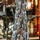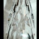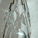Hand Blown and Cut Crystal Footed Bud Vase with Cut Coin Dots . It is 12" tall and on the top of the foot it is marked 1st 89-90. Not sure it that indicates a number system or the date. The cut and highly polished coin dots are larger toward the bottom and get smaller on the way up. The glass is heavy and I assume is leaded but since there is not a tag I cannot say for sure.