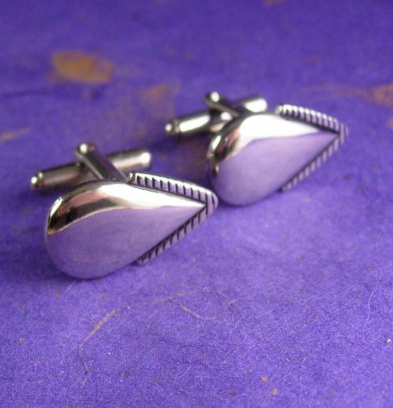 These vintage sculpted silvertone tear drop cufflinks would look great on a man or woman. They can be engraved/personalized adding that extra special custom fit. This is the Time to be thinking of the upcoming holidays and what better way then that something for the men that have everything! This would be a great idea because it is Vintage and not something you can buy Everyday. OR perhaps Just A perfect addition to a collection. Boxed for gift giving; gift wrapped on request. ∆ Maker: unknown ∆ Material: silvertone metal ∆ Size: see photo ∆ Weight: light ∆ Condition: In good vintage pre-owned condition. ∆ Lovely patina! These are part of a MASSIVE estate collection of cufflinks and jewelry so be sure to check out our other items here: https://www.etsy.com/shop/NeatstuffAntiques?section_id=all We don’t polish these previously owned well loved pieces so we can keep the original patina. We try and photograph all of the pieces next to a ruler so you can see the actual size. All jewelry sold as found. NOTE TO BUYER: We Do not offer engraving services of any sorts as we are not equipped to do so I’m sure your local jeweler would be happy to do so, sorry for any inconvenience thank you. All cufflinks ( unless otherwise specified) are considered costume jewelry. We use the descriptions of any stones from the manufacturers titles when they were first produced. When we refer to the stones as moonstone or jade or garnet, for example, we are using how the original manufacturer of the pieces used them. We cannot guarantee the authenticity of a stone in a costume piece of jewelry. ***ATTENTION!*** Shipping rates for domestic and international delivery have skyrocketed! I have adjusted the shipping rates accordingly. If you wish to have another method of delivery (i.e. First Class International) PLEASE let me know before placing your order. My goal is to save both of us money on shipping. Oct 2, 2014