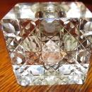 Cut Glass body with no problems (crystal clear) inkwell with Sterling top. It is cut crystal with a faceted body and cut glass cover. It has hinged sterling mounts in very good condition. Letters, "EM" embossed on the lid. This has a German Maker's mark, "Gebruder Kuhn" who started business in 1860. The faceted body is beautiful and clear. No additions or repair (in excellent condition).