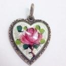 DAVID ANDERSEN WILLY WINNAESS STERLING SILVER GUILLOCHE ROSE ENAMEL HEART Necklace Sterling Chain.