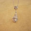 The photos don't do the sparkle and brilliance that comes off this necklace justice. This dazzling, eye catching sterling drop is quite elegant and well made..The chain is nicely weighted and it has unusual links which add to the sparkles. It will definitely make her eyes sparkle.