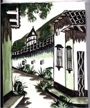 Delightful Diptych Oil Paintings on canvas. Clearly it is Latin American and I strongly suspect it is a street & structure scene from Antigua Guatemala. The colors are mainly shades of green and black. The signature is AG. No other information is available. They are in excellent condition and sold without frames.