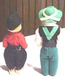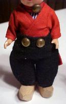 Offering these two vintage miniature hard plastic dolls; including one 5 inch tall ethnic dressed boy doll jointed arms and legs; pressed felt face with hand painting, blonde mohair type wig; green, blue, black, and yellow felt ethnic outfit. Second doll is 4 3/4 inches tall, jointed arms and legs, molded hair, hand painted face with sleep eyes that work smoothly; dressed in black felt pants and red shirt, with brass buttons; matching black hat and these wonderfully carved wood Dutch shoes! Both are in very good condition, no chips or cracks, no holes or stains. The doll in green is most likely from Italy and the Dutch doll is probably Germany, though I could not get to any markings that may be under clothing. Two great little dolls for your collection!