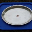 Early 1900 SILVER Oval Tray 10" W x 7" Depth x 1" High with Hearald Crest BIRD + ALTA PETE maker hallmark JS&SB
